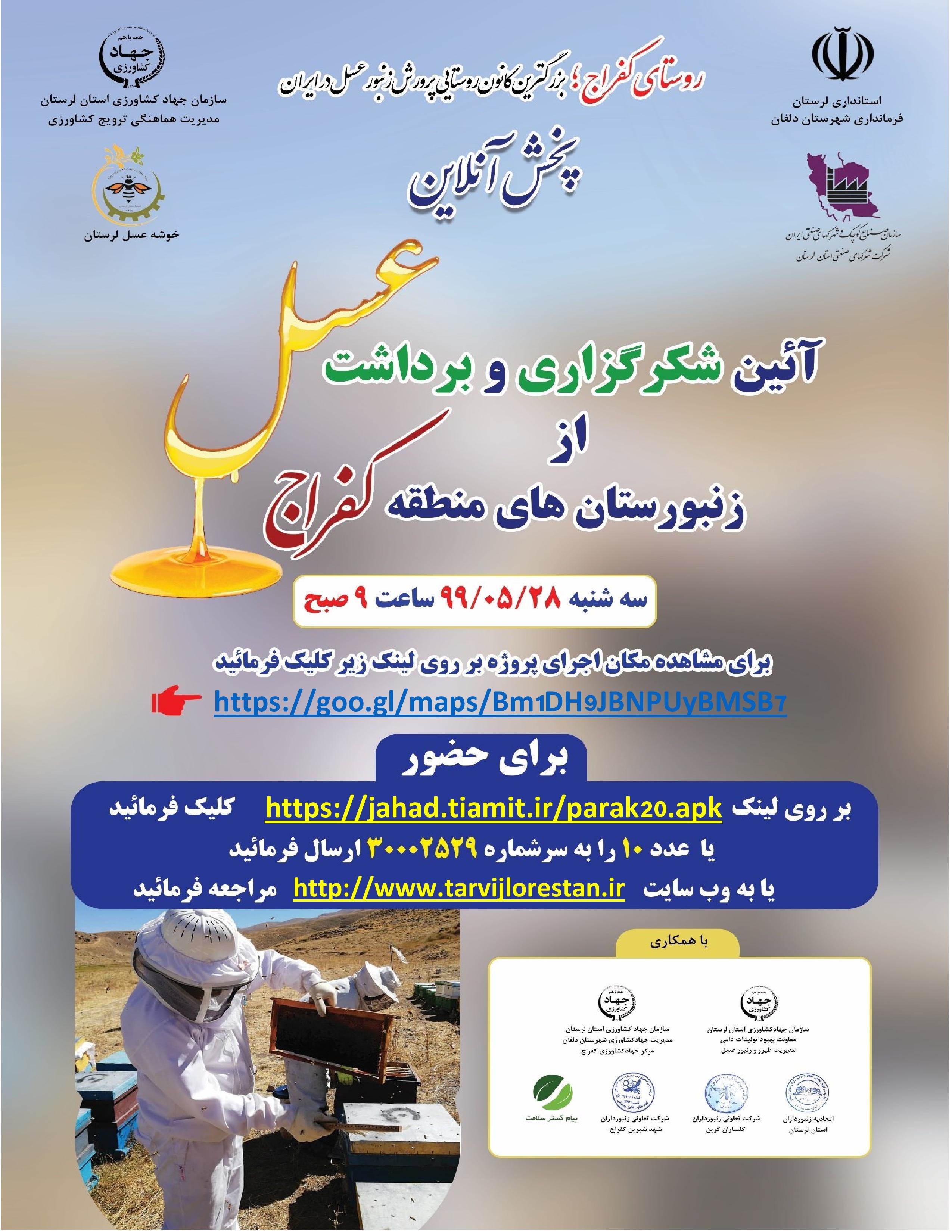 معاون صنایع کوچک شرکت شهرکهای صنعتی لرستان، گفت: همچنین، هر یک از علاقه‌مندان به حضور مجازی در آئین شکرگزاری و جشنواره برداشت عسل لرستان می‌توانند از ساعت 9 صبح روز سه‌شنبه، با ورود به لینک حضور و لینک سایت، این مراسم را صورت زنده و مستقیم مشاهده کنند.